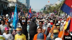 当地的人权组织谴责当局采用暴力手段以及部署特种部队的做法。人权组织说,金边附近一家工厂外面至少有10人被逮捕。
